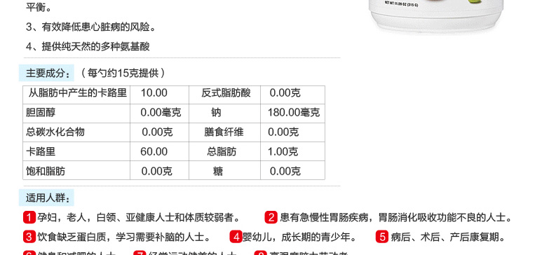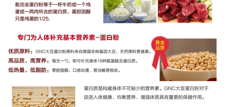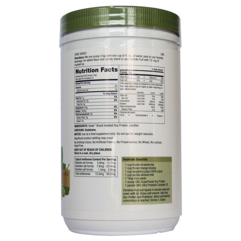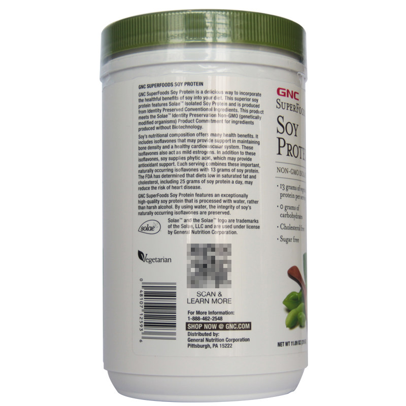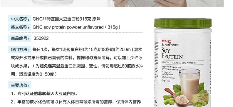 健安喜GNC纯正大豆蛋白粉(无糖无味)蛋白质粉315g/桶(美国进口)