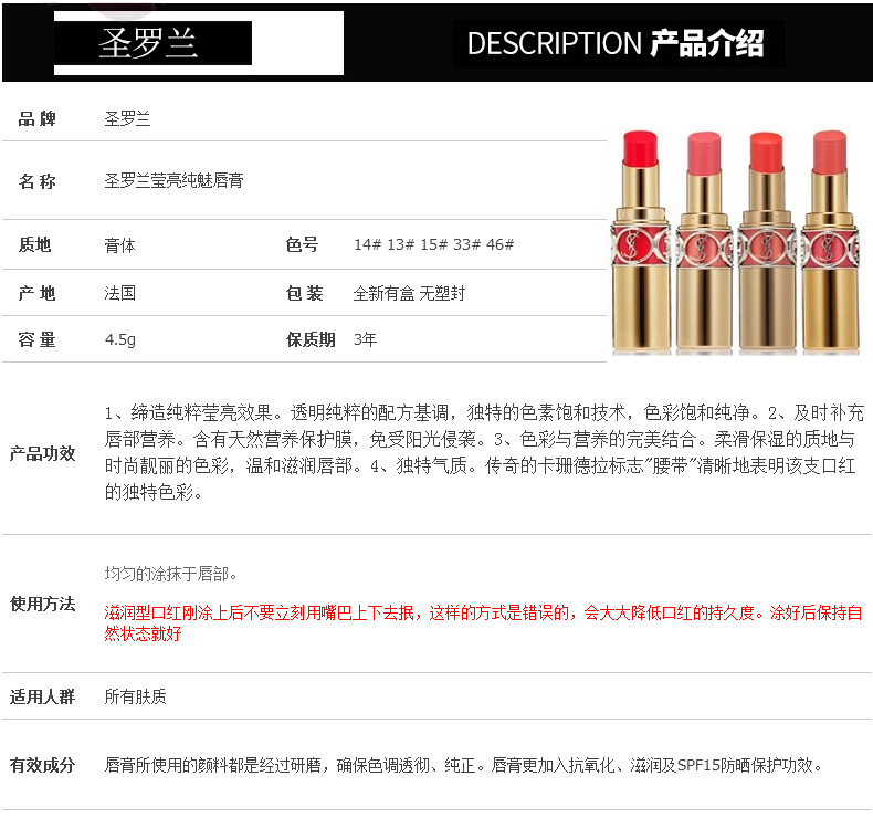 圣罗兰莹亮纯魅唇膏 圆管 #13