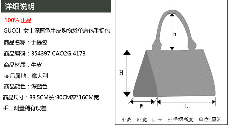 Gucci 女士深蓝色牛皮购物袋单肩包